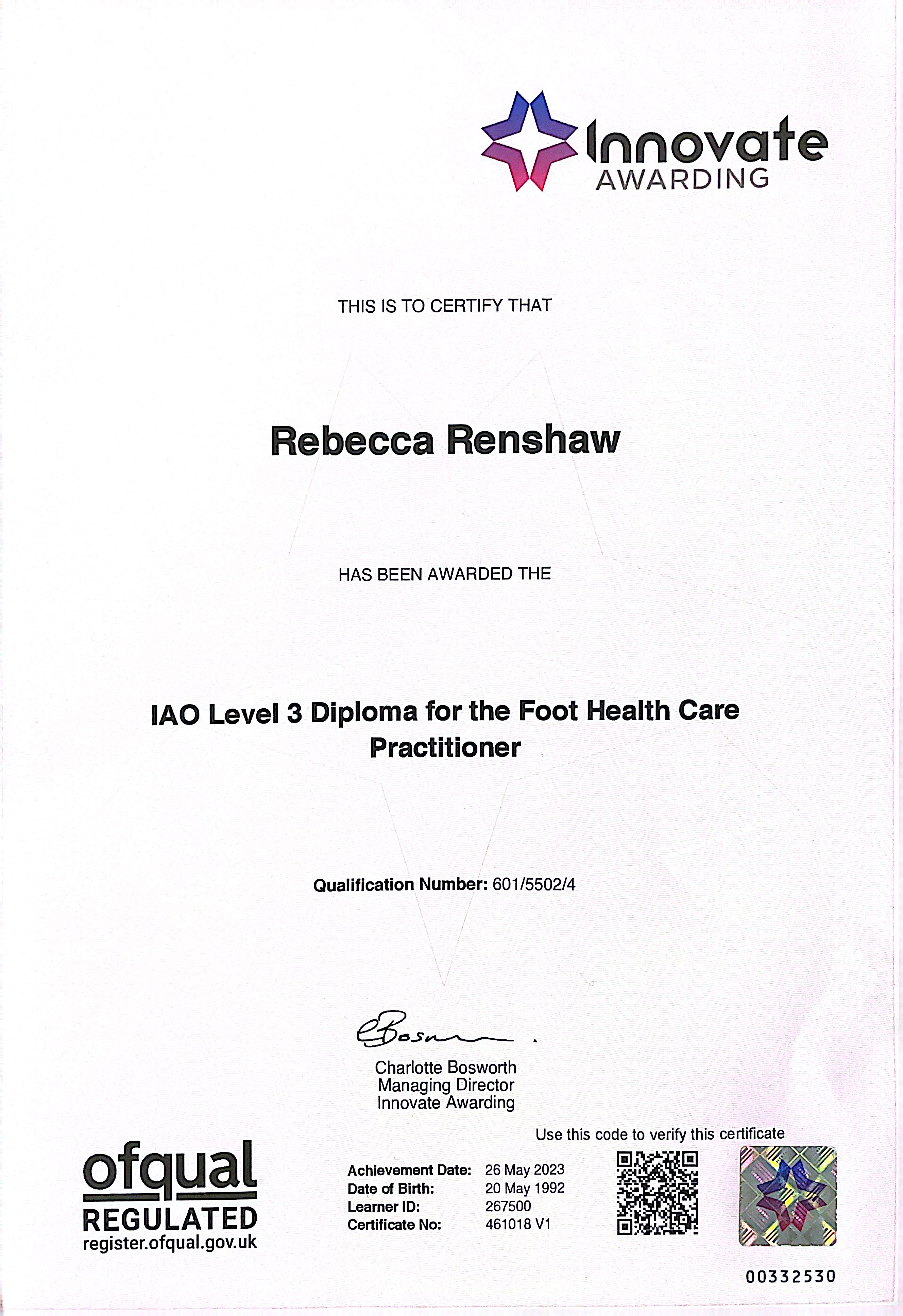 Rebecca Renshaw S.A.C DIP RFHP